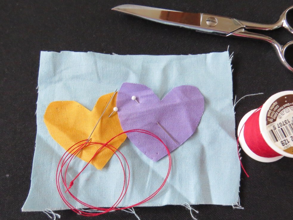 Step Two: Pin shapes on a piece of fabric & thread a hand-sewing needle.