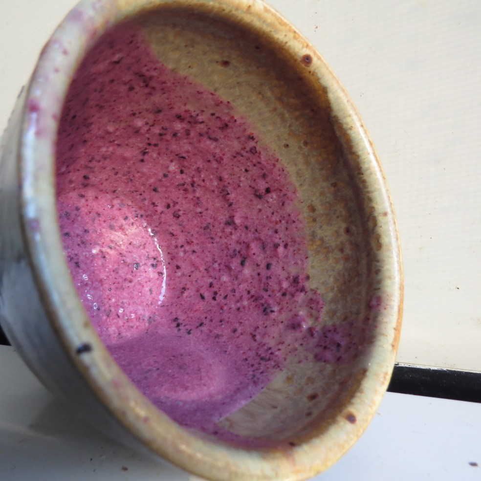 Winter does not deter us from smoothies. Saving fruit in the freezer is helpful for us, because we have a short berry season, but we don’t always have a local stock of fruit, and often buy from the store. Are smoothies drinkable ice cream? Possibly!  IMG_5374.jpg