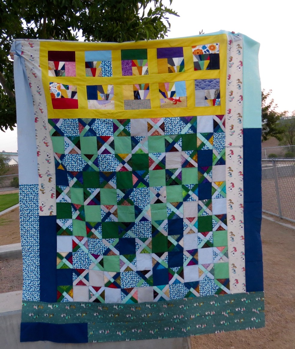Honestly, sitting close to this quilt top since April, I don’t know if I’m ready to look at it as a whole. And really, it isn’t complete, because I have to add quilting, backing, and binding. Overall, I like the movement and the quilt top.