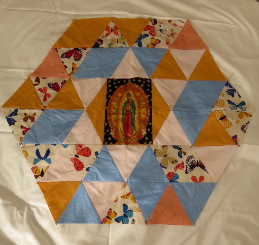 I made a pincushion with some of the scraps left over from the quilt tops I’ve been working on. The fabric is from Andover’s Natural History deisgned by Lizzy House and Robert Kaufman. Lavender is one of my favorite scents, so PlumEasy‘s pincushion filling was a natural fit. The finished size is 5″ x 6 1/2″ x 2″, and it holds a lot of pins!
